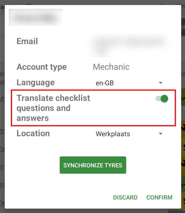If a mechanic enters a remark in the chosen language, it will be translated on the desktop to Dutch.
