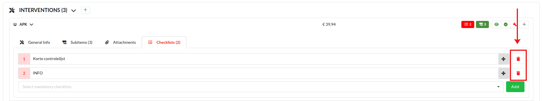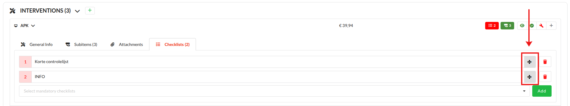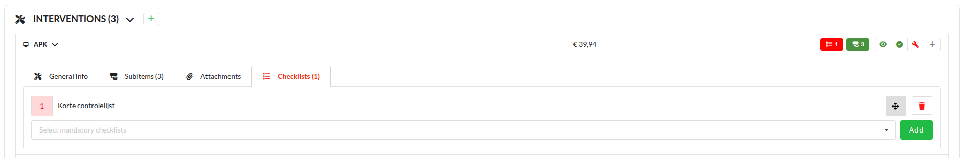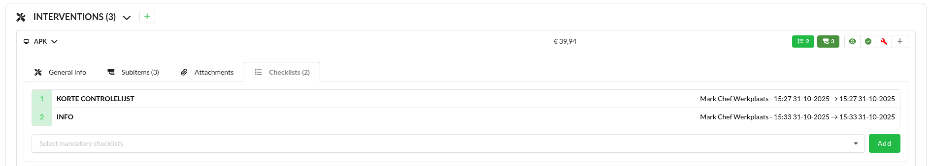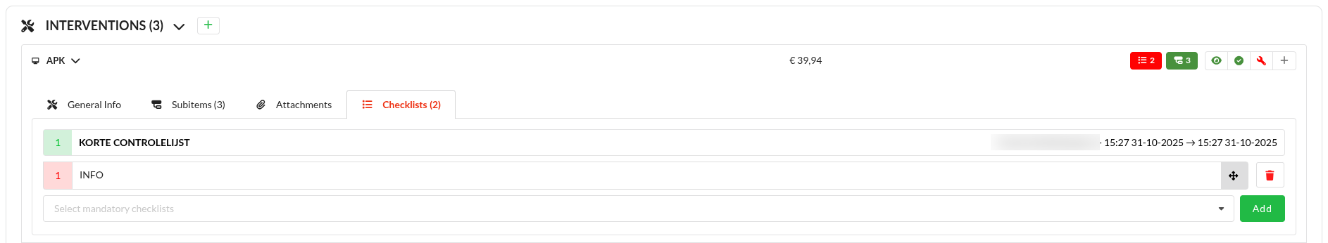 After all checklists are done, the checklist icon on the intervention will turn green.