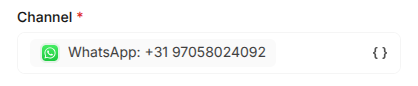 Click in the `Channel` field and select `Channels > WhatsApp: +xxxxxxxxxxx`: