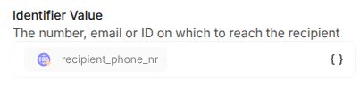 Click in the `Identifier Value` field and select `Trigger > payload > body > recipient_phone_nr`: