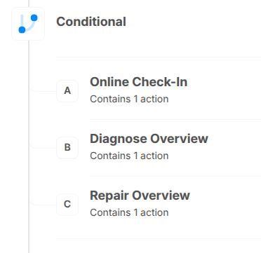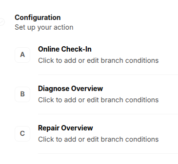 Click on Add new branch to add Branch C, and on Branch C title to rename it to Repair Overview.