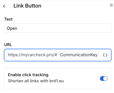 Then as done previously, select the `xxx` placeholder, click on the { } icon on the right side of the input field, and select the CommunicationKey variable created ealier: