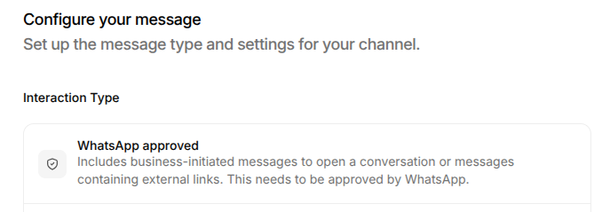 Choose the WhatsApp approved interaction type: