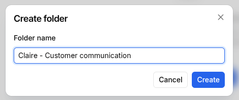 We recommend creating templates related to Claire's customer communication in a dedicated folder: