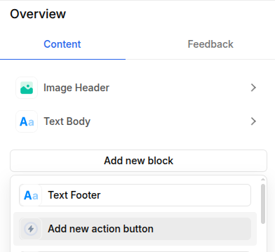 Go back, click on Add a new block, and select Add new action button: