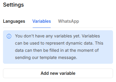 The variables used in the selected template earlier will now appear below the language dropdown.