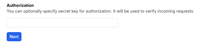 Do not enter anything in the optional Authorization and click on Next: