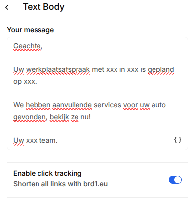 Enter the message that will be sent, keeping in mind that a call-to-action button will later be placed below this text.