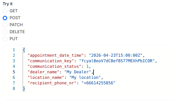 Redo the same for `LocationName`, `AppointmentDateTime`, and `CommunicationKey` ( the example value for that one is a random string of characters ):