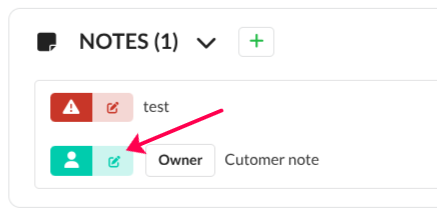 Existing notes can be edited at any time by clicking on the pen icon for this note.
