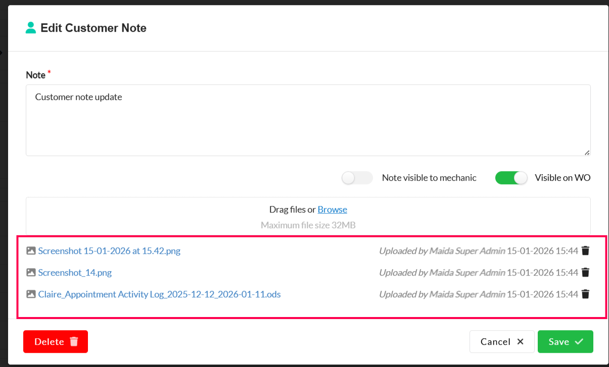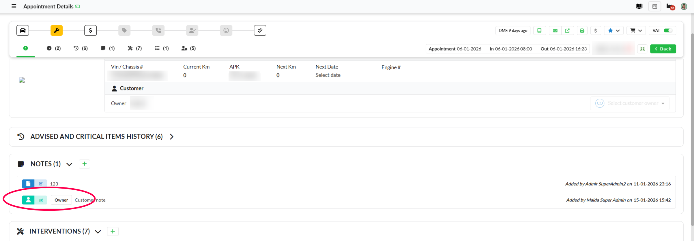 Customer notes allow dealers to add notes to a specific customer and manage them in one place. By adding a note to a customer, you can automatically add this on all their related workorders. Customer Notes work the same way as car notes and WO notes.