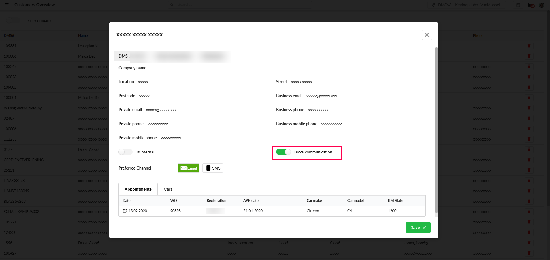 If your location has opted to use our Customer Communication module , you can exclude customers from receiving any email and SMS communications. Simply toggle on the button called Block Communication as indicated in the image below.