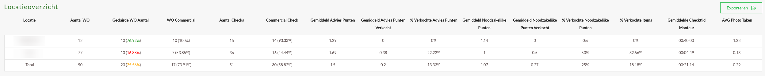 Commerciël overzicht per locatie