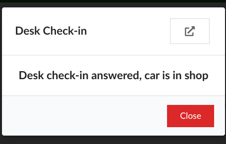 A pop-up will appear on your screen. You can click the button indicated by the red arrow to open the same Desk communication in a new tab, allowing you to see exactly what the customer sees on the tablet. The communication is read-only.