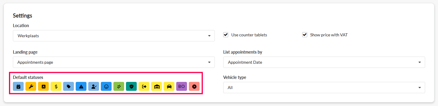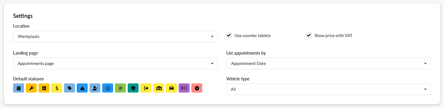- Vehicle type: Filter on which appointments are visible in the appointment list depending on vehicle type**
