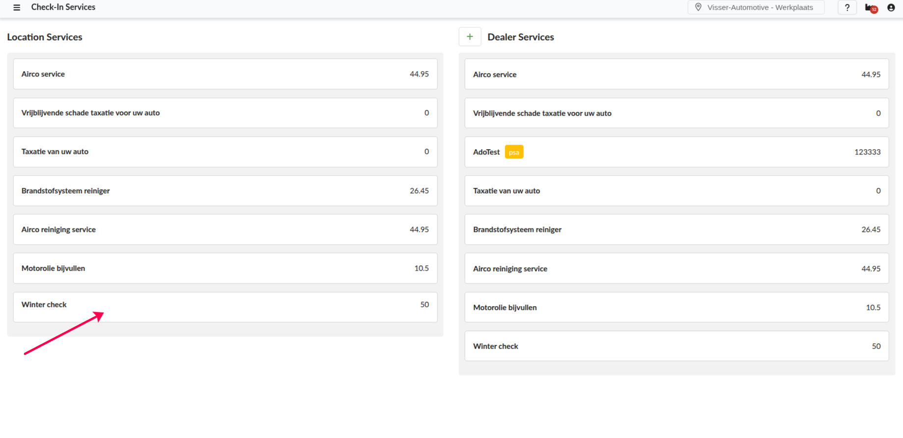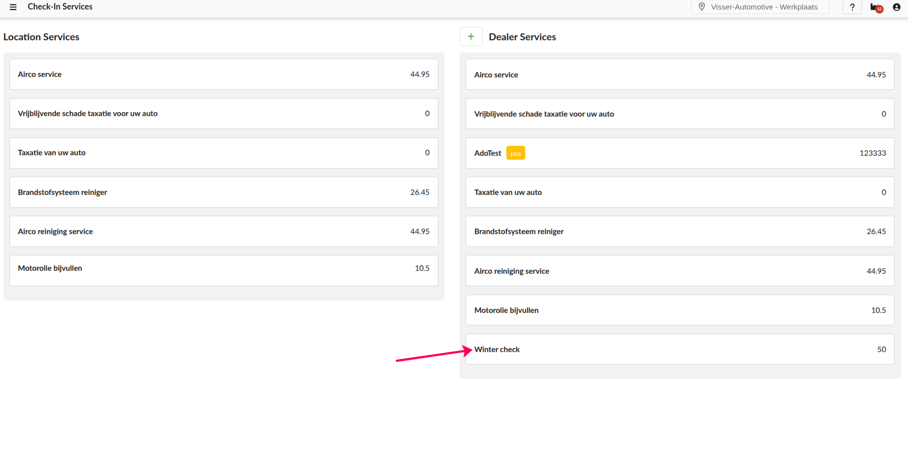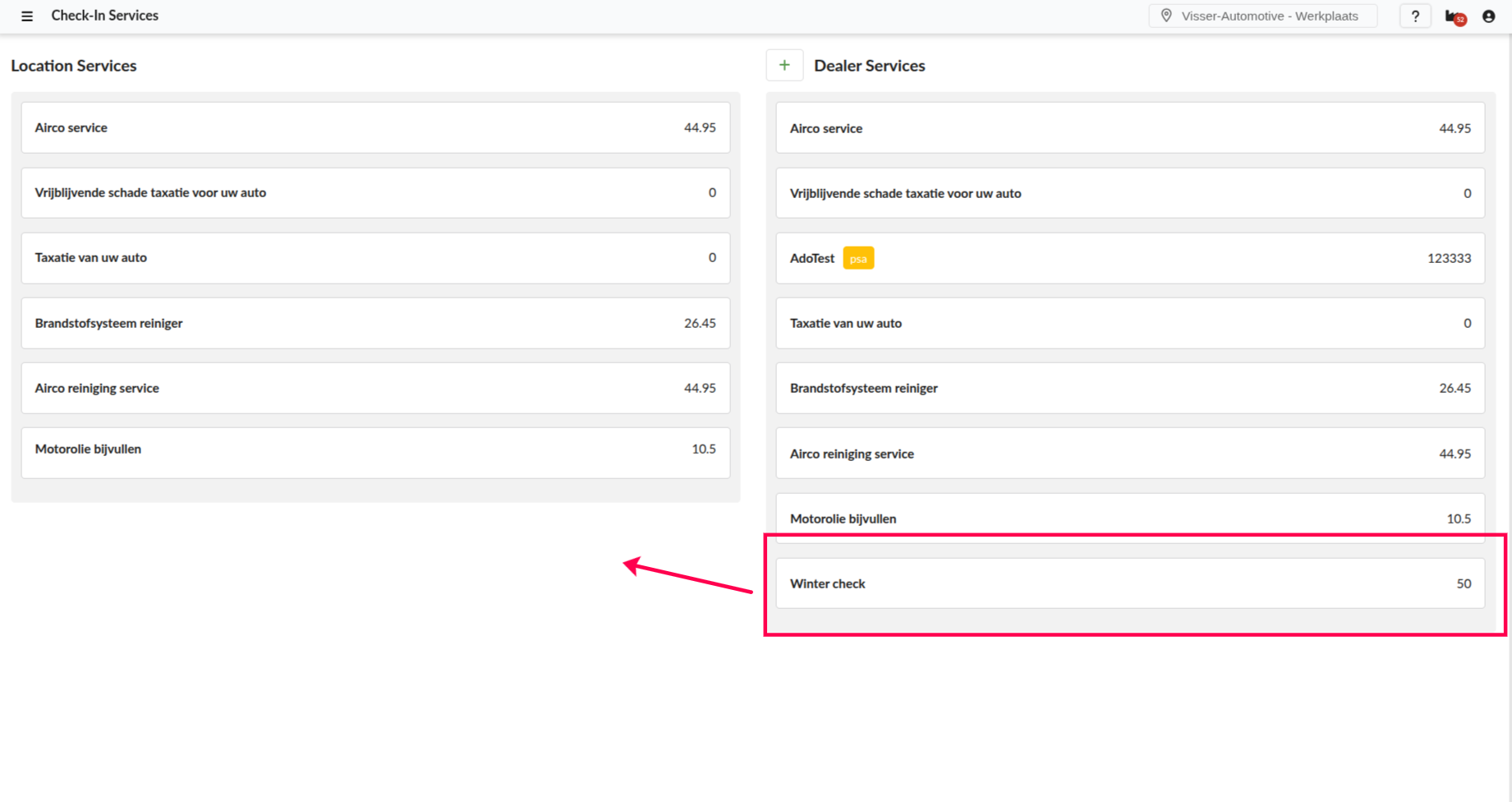 Click Save, it should now be displayed on the left column named Dealer Services.