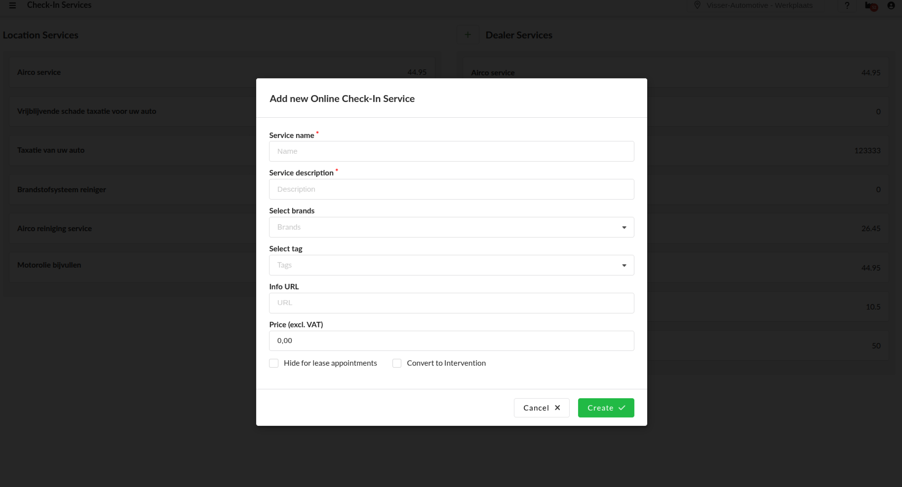 Categorize the service with tags. This will allow you to evaluate and measure the performance of the service in the report Online Check-in Performances in the Dealer reports.