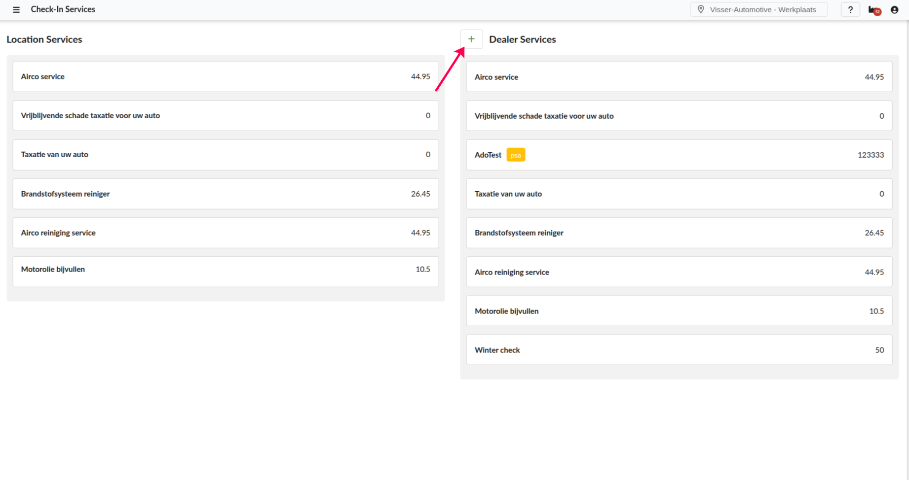 Click the plus button next to the Dealer Services