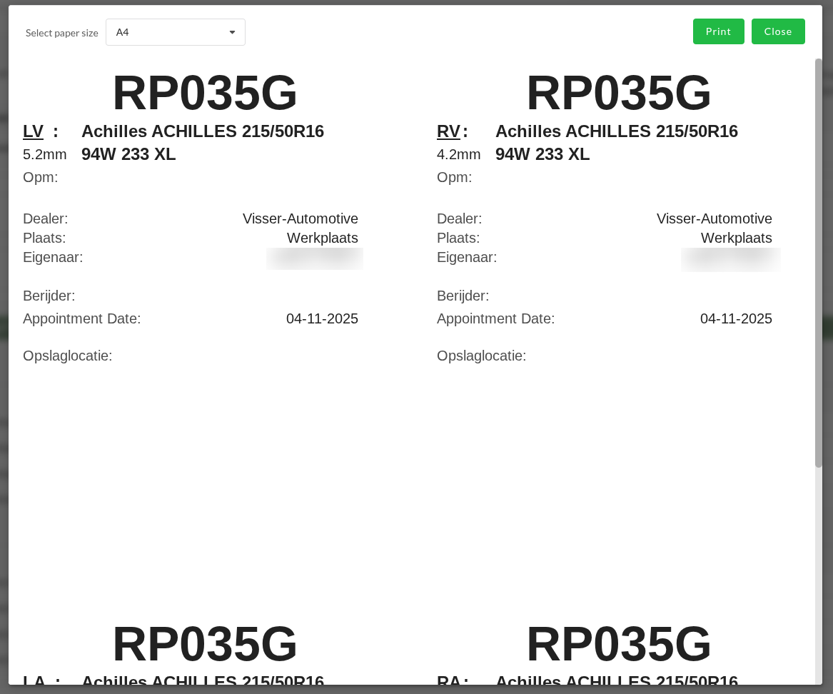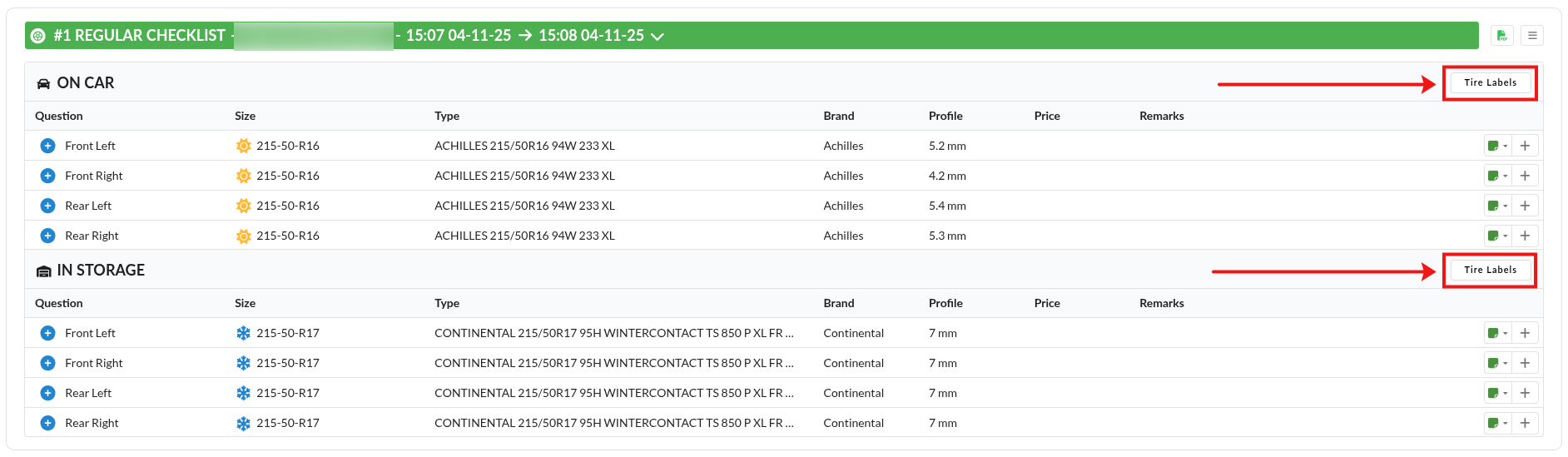 Access the appropriate stickers in Direct-Access, by clicking the printer icon next to the tires set that will be stored.