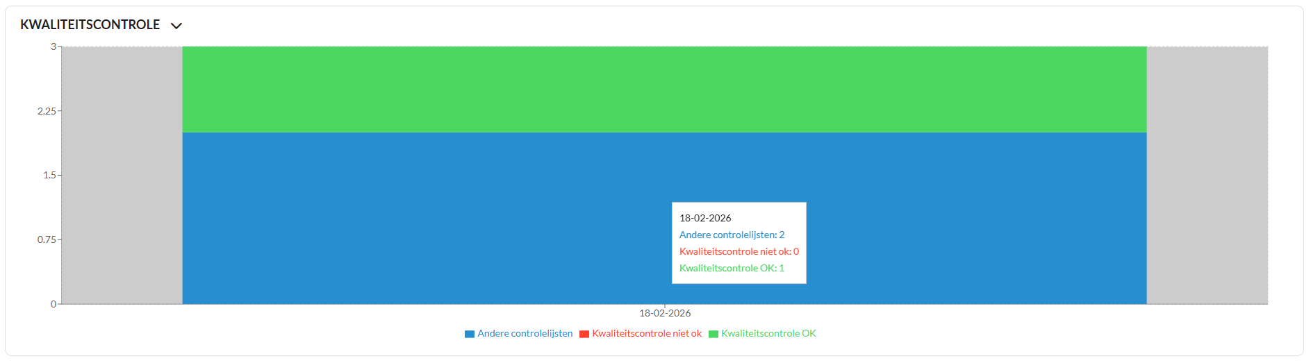 - Kwaliteitscontrole niet OK: Aantal kwaliteitscontroles met advies- of noodzakelijk punten, gelabeld als niet OK.