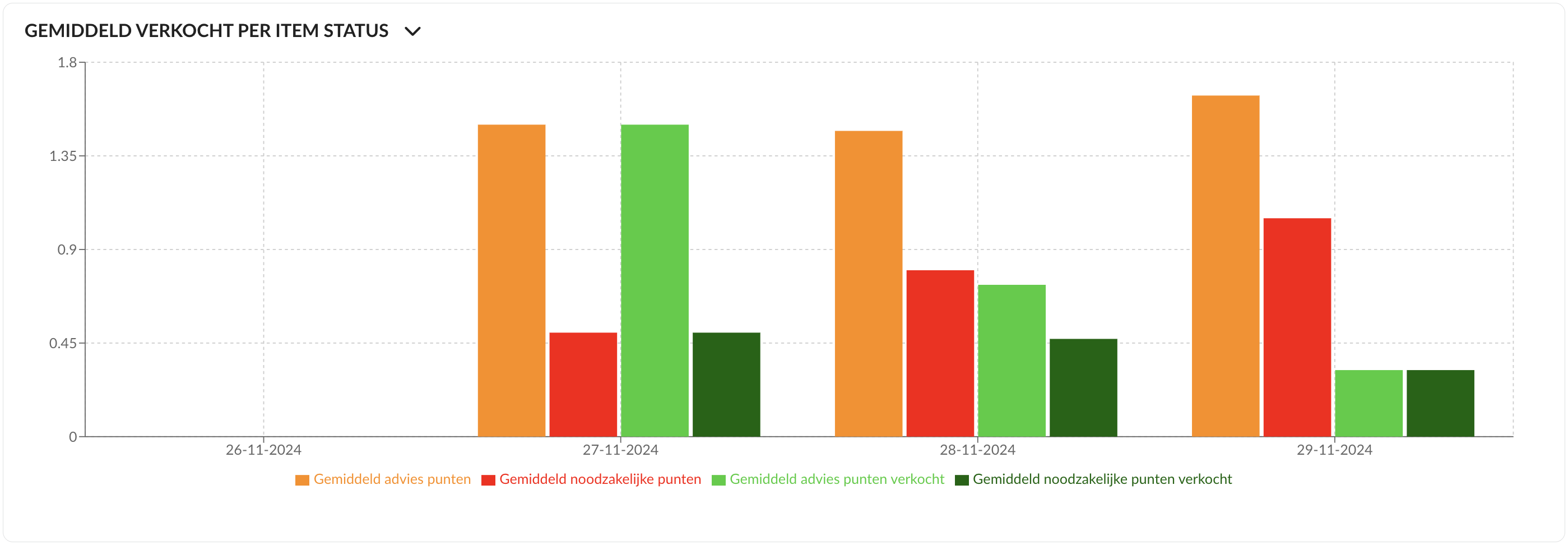 - Verticale as: Gemiddelde van verkochte punten per uitgevoerde checklist.