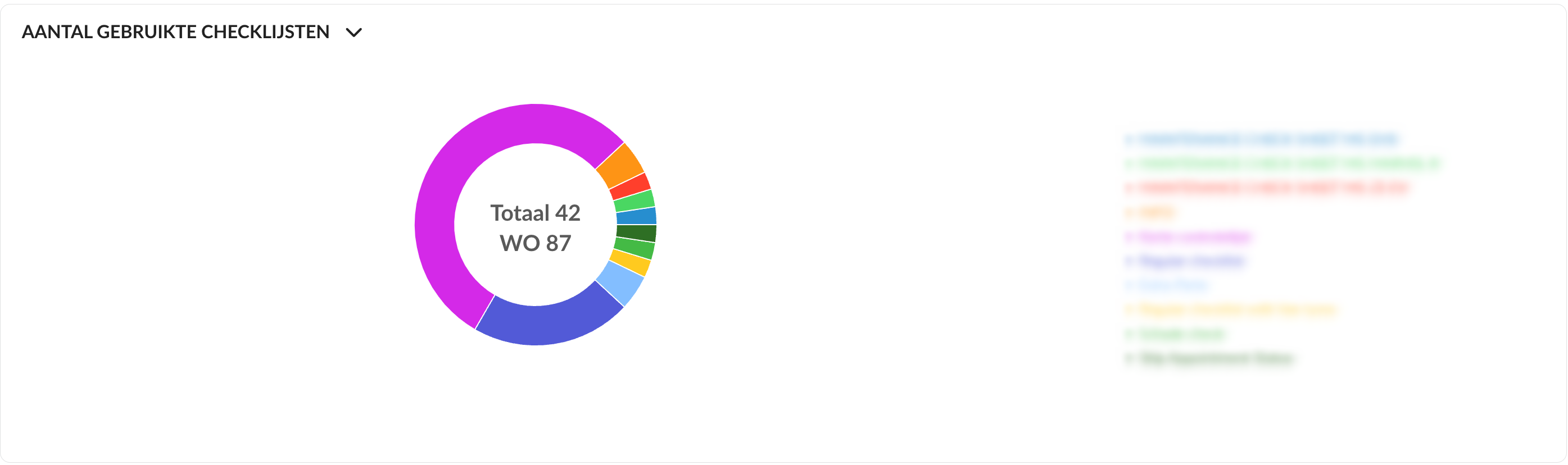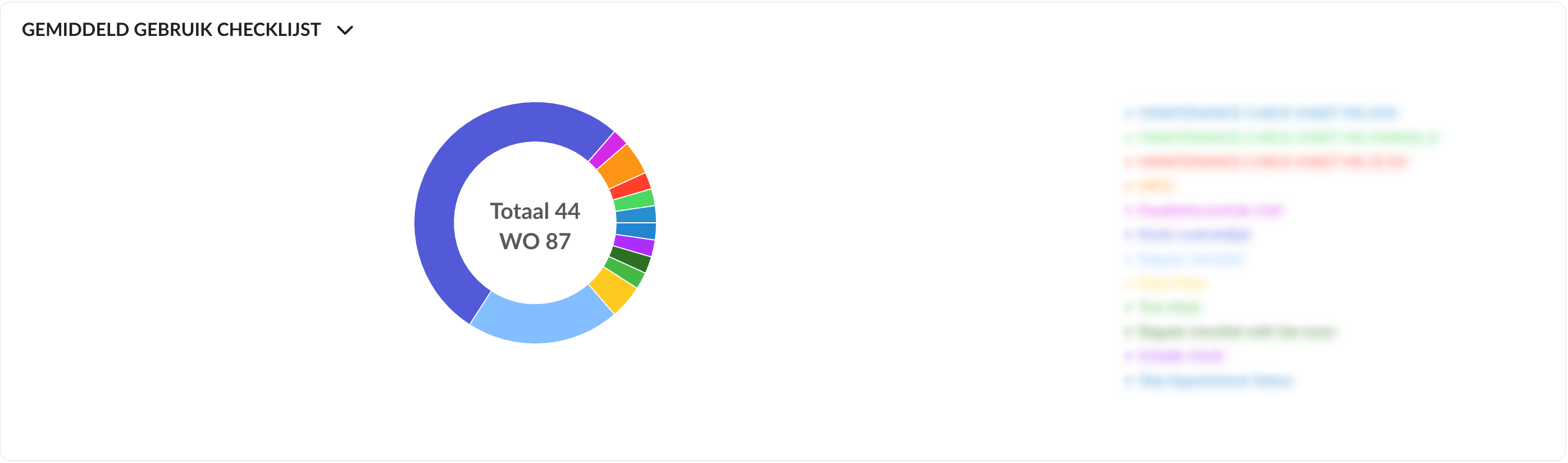 Deze grafiek geeft weer welke checklijsten het meest zijn gebruikt tijdens de geselecteerde periode. Let op dat de checklijsten in de juiste aanbevolen verhouding worden gebruikt (bijvoorbeeld: bij voorkeur de commerciële checklijsten gebruiken).