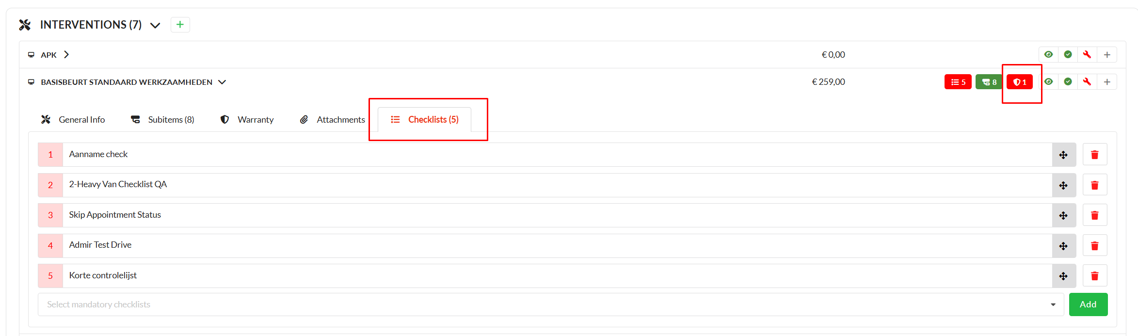 If a checklist: Can be completed only once, and Is already done or assigned to another intervention
