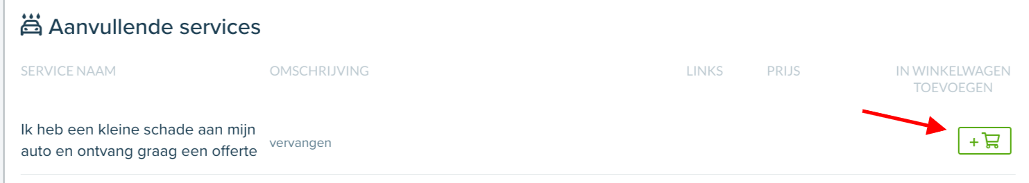 De klant accepteert de service door op het groene winkelmandje te klikken.