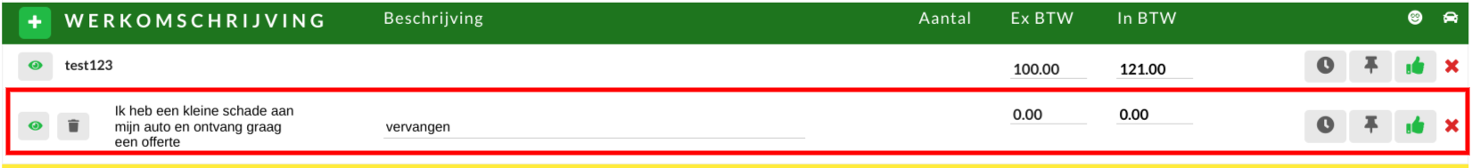 Als de optie schadeloket is aangezet voor jouw locatie, kun je automatische de klant via het schadeloket voorzien van een offerte voor het repareren van de schade aan zijn auto.