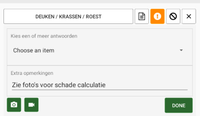 Indien antwoord advies of noodzakelijk is, wordt er gelijk tekst in extra opmerking veld getoond: Zie foto's voor schade calculatie
