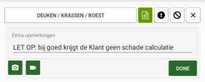 Indien de monteur antwoord met optie goed met een opmerking, wordt het extra opmerking veld automatisch ingevuld met tekst: Let op: bij goed krijgt de Klant geen schade calculatie.