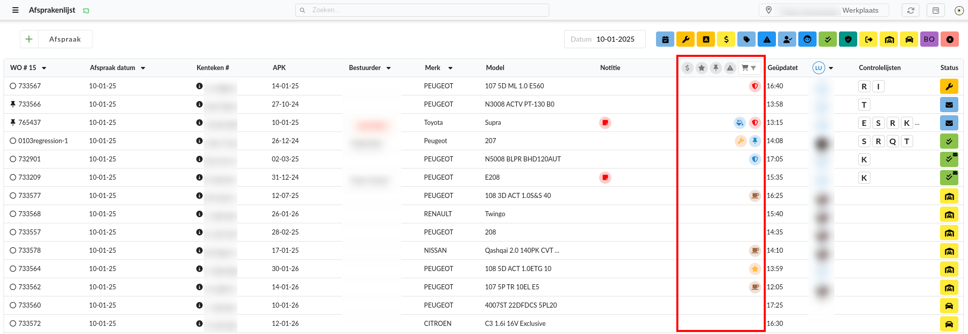 Op onderstaande icoontjes kun je niet filteren in deze kolom.