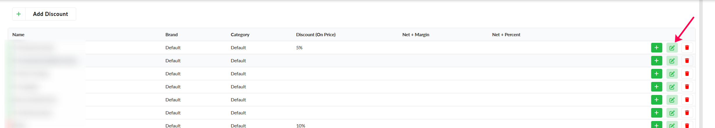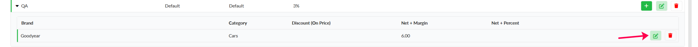 Once you created a Brand discount, you can go back an edit by clicking the button with the pencil icon.