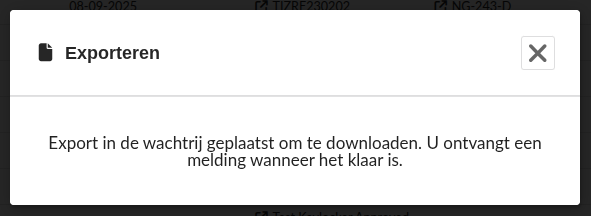 Door te klikken op de export knop in de rechter bovenhoek, kun je een export downloaden van alle backorders in het dashboard.