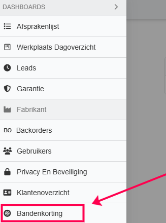 Open het hamburgermenu aan de linkerkant en selecteer Bandenkorting.
