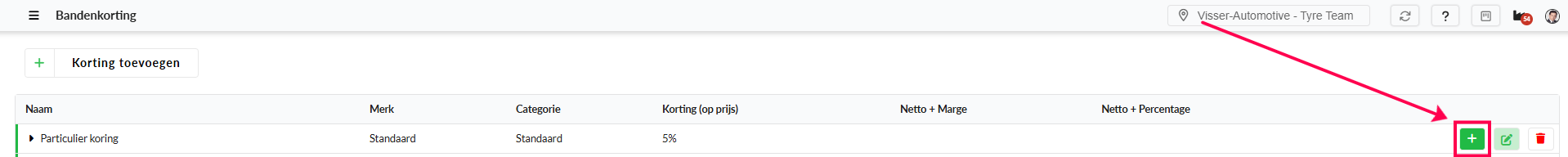 Klik in de rij voor de in aanmerking komende korting op de plus knop (+).