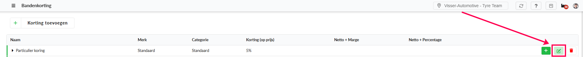 Zodra je een korting hebt aangemaakt, kun je deze bewerken door op de knop met het potloodpictogram te klikken.