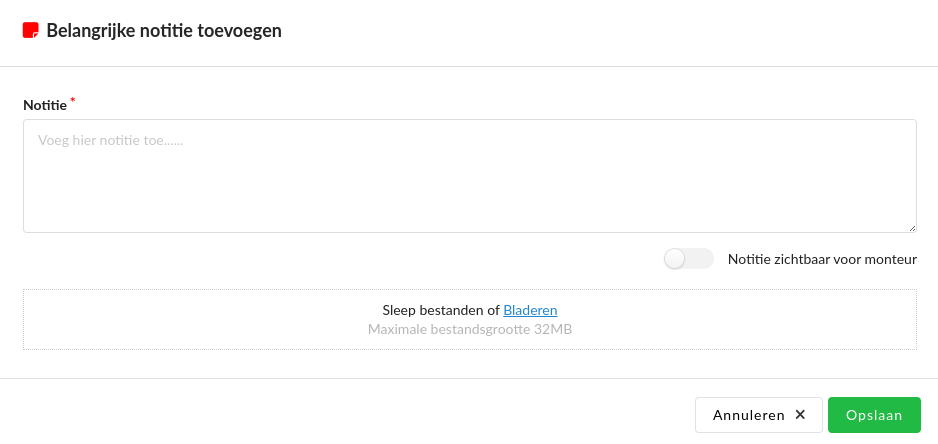 - Notitie zichtbaar voor monteur: Hiermee is de notitie zichtbaar op de tablet van de monteur.