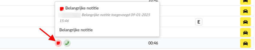 Daarnaast is de belangrijke notitie ook te zien in de afsprakenlijst. Hover met de muis over het icoon om de notitie te weergeven.