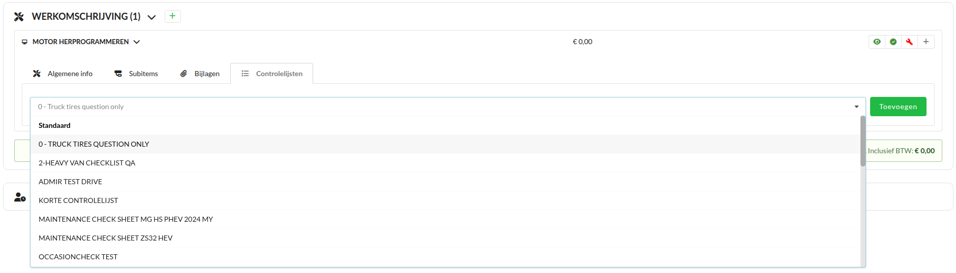 - Het is niet mogelijk om een Visuele controle of Extra onderdelen-controlelijst toe te wijzen.