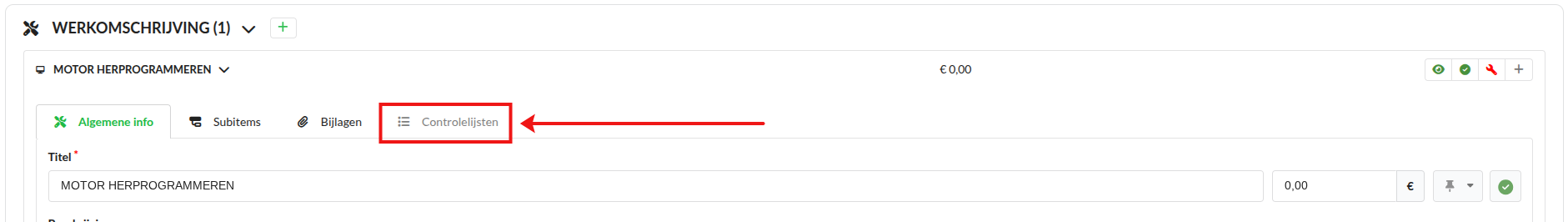 Wanneer je een interventie uitvouwt, heb je de mogelijkheid om het tabblad Controlelijsten te selecteren.