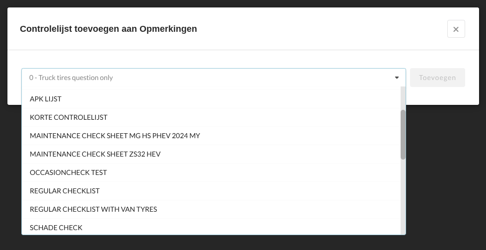 - Selecteer een controlelijst en klik op Toevoegen