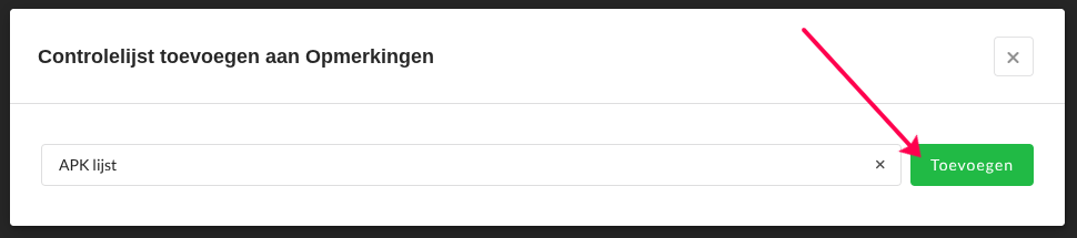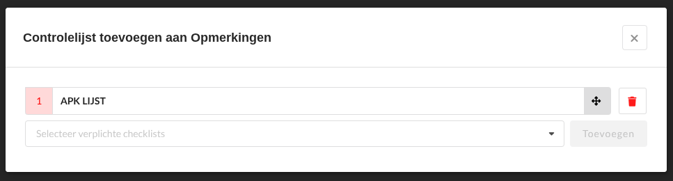 Wanneer de gewenste controlelijsten zijn geselecteerd, kun je het modal sluiten.