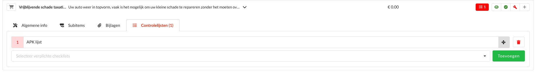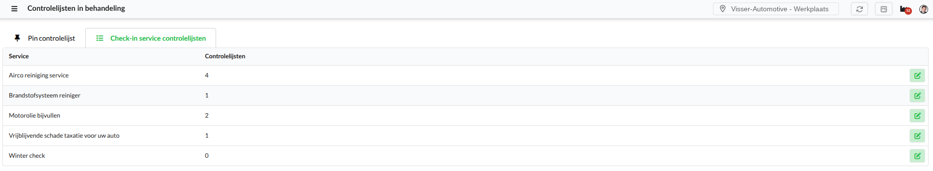 Het toevoegen van controlelijsten werkt hier op dezelfde manier. Alleen als een service is geactiveerd op de locatie is deze hier zichtbaar.