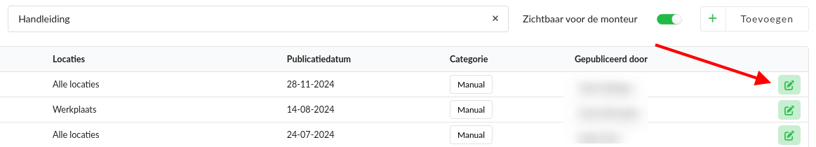 Je kunt een document bewerken door op de bewerk-knop te klikken.