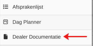 De functie is toegankelijk via het menu > Dealer Documentatie.
