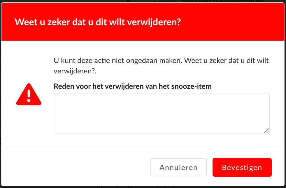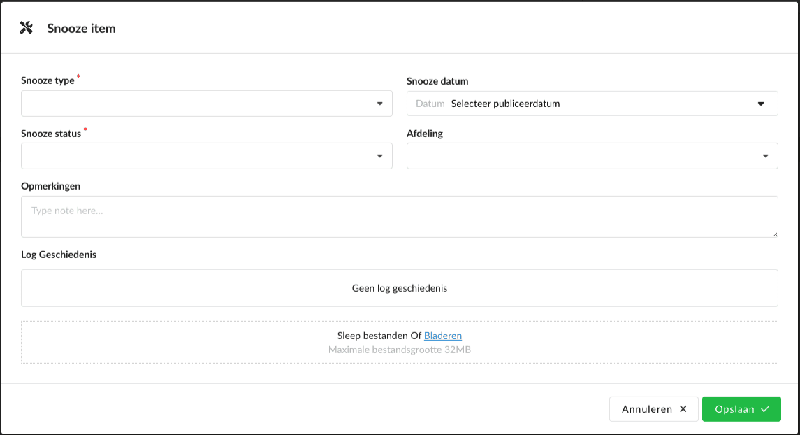 Hier staan alleen de snoozed items met de status goedgekeurd, in behandelijk of nieuw.