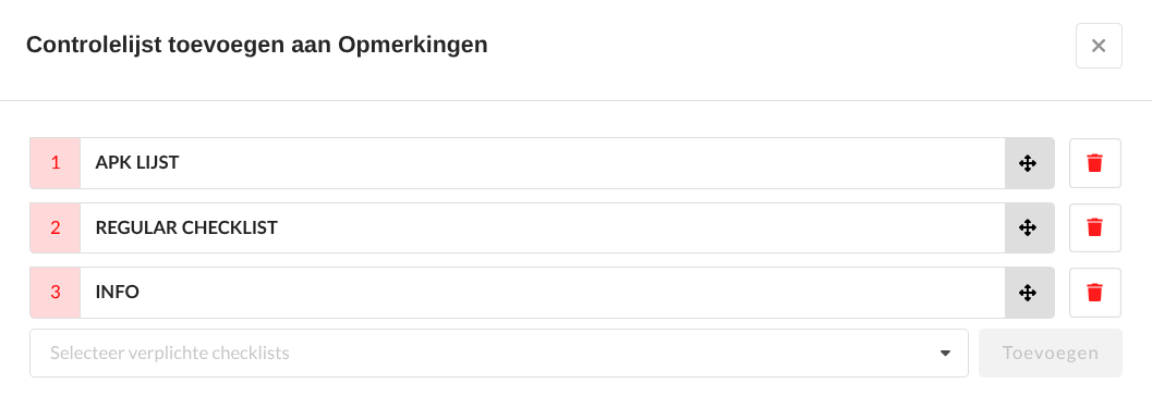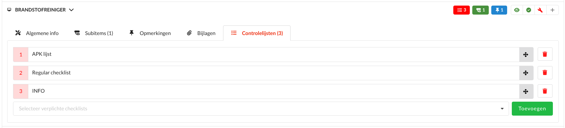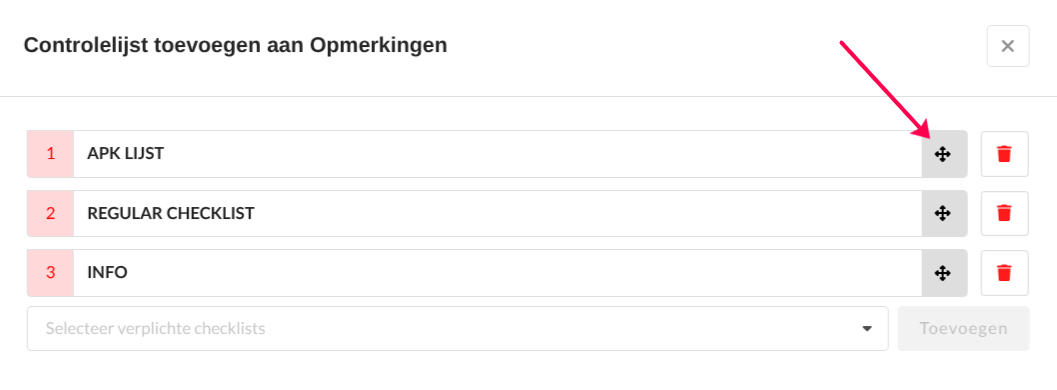 Wanneer er meerdere controlelijsten zijn toegewezen, kan je op het grijze pijltje klikken om de volgorde te wijzigen: