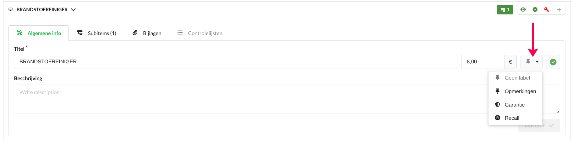 Met deze functie is het mogelijk om automatisch vooraf gedefinieerde controlelijsten toe te wijzen aan interventies, op basis van het geselecteerde pin-type. Dit zorgt voor consistentie en bespaart tijd bij de afhandeling van werkorders.